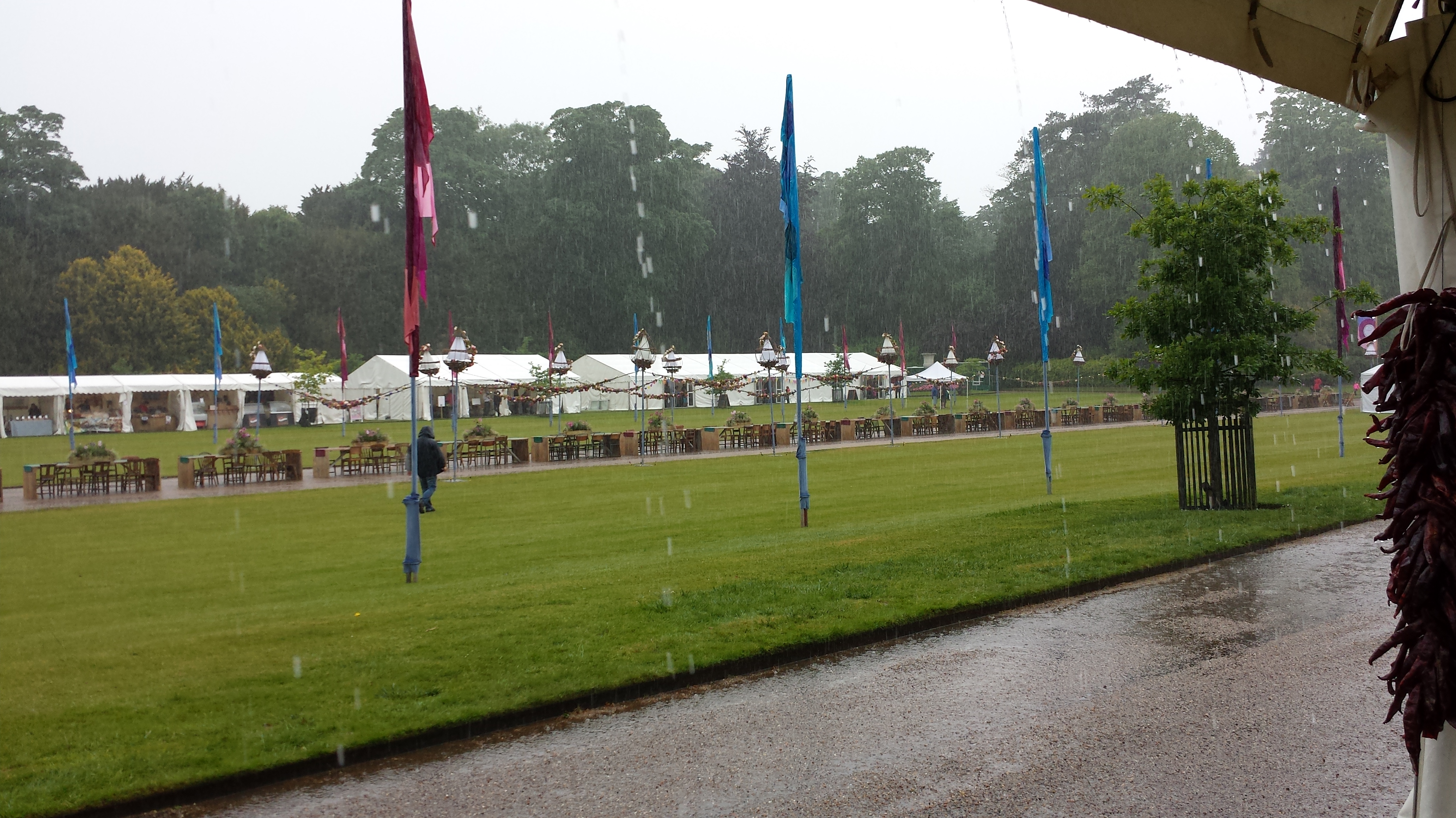 but is an awesome setting for an event. They certainly went to town on the banner front – at times it looked more like a battle scene from The Water Margin than a foodie event! The weather was…well…shall we say it was typically British? Relentless drizzle for most of the day on Saturday until the point where the weather gods obviously though ‘bollocks to this light stuff’ and just chucked it all down in the next hour…what the great Terry Pratchett called ‘an upright sea with slots in it’. Sunday was sunny though, a much more pleasant day for the peasant folk to dance and sing. All in all a fun event, very colourful and a fitting celebration of midsummer.