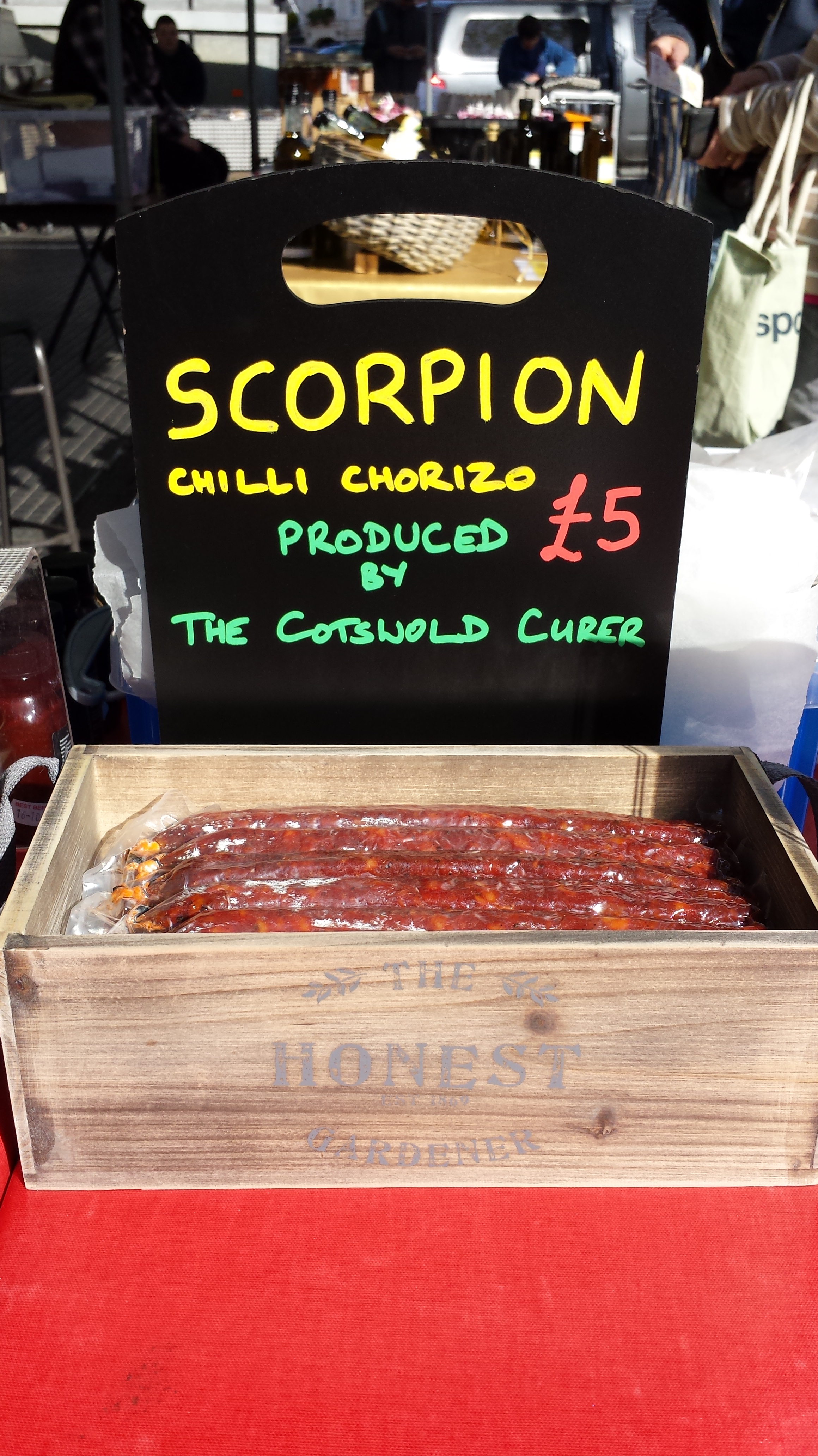 Saturday was my home fixture in Devizes, it was a really lovely spring day and our newest product, a scorpion chilli chorizo made for us by Pete at The Cotswold Curer, was extremely well received.