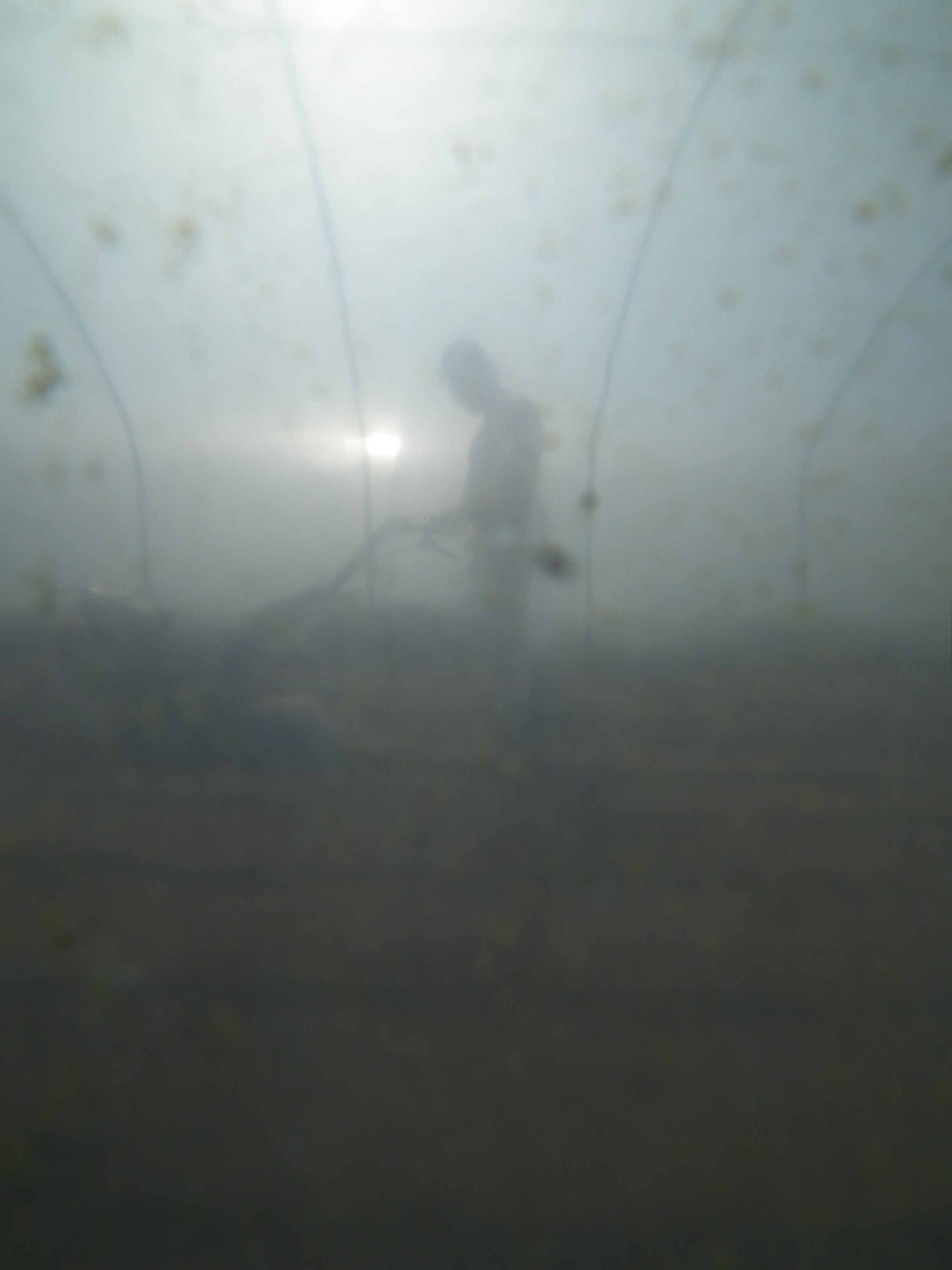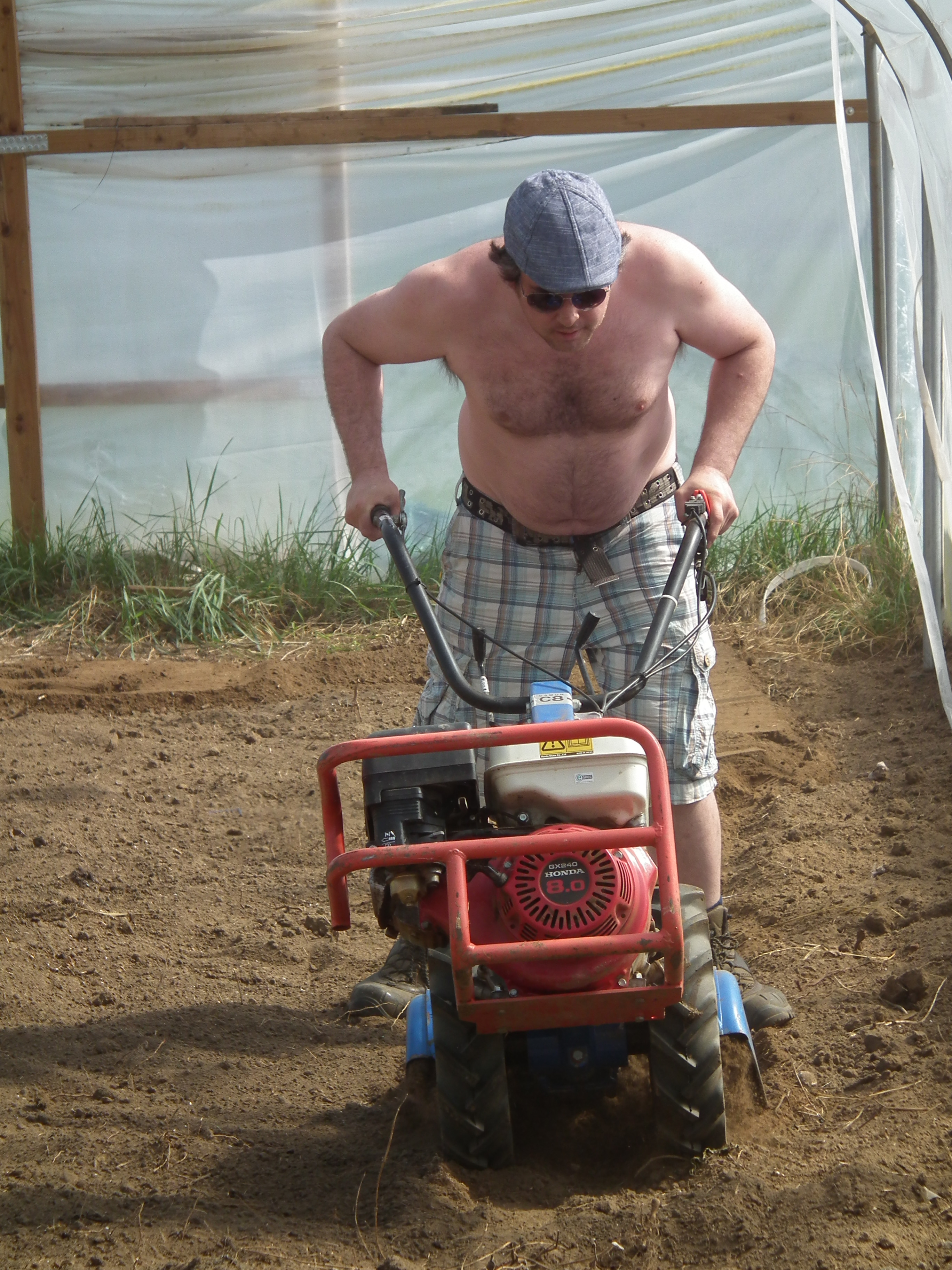 So why does this matter? Well, it’s high time we were putting our crop plants out into the tunnels where they belong. They’re been happily growing for a little while now, all nicely potted and toasty on heated mats, but there comes a time in every chilli palnt’s life where they must be unceremoniously hauled from their cosy pot home and thrust into the soil, or possibly this year, a bigger pot. Yes folks, we’ve invested in the advanced technology of autopots with a view to increased yields, better control and – this is the most important bit – not having to do as much work next year in preparing tunnels. See, we do plan ahead! Even as I type, industrious types are thrusting plants groundwards…